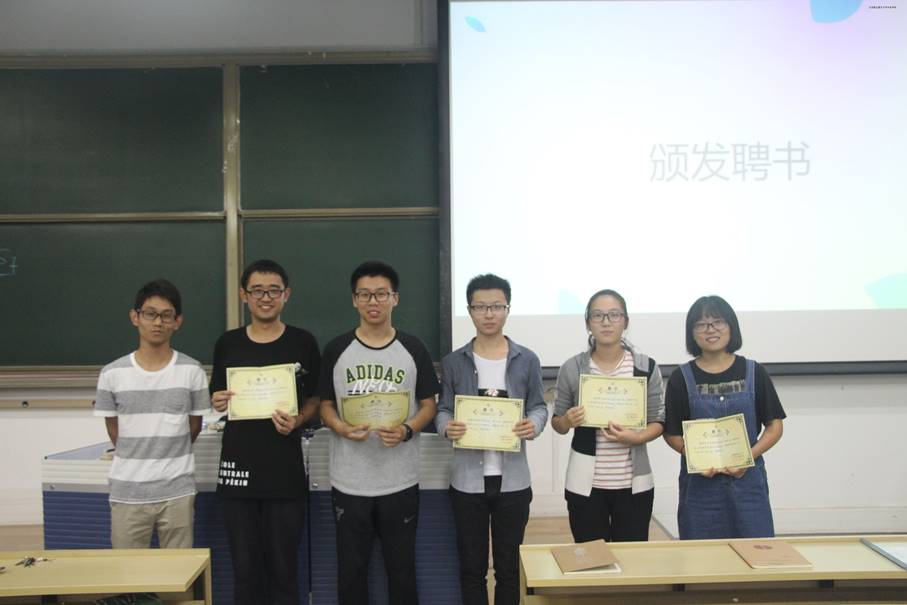 大会上还由李导向新的学生会各部门部长和副部长颁发聘书。活动策划部主任任鹏飞介绍了新的学生会活动策划组织的流程和规范,对于活动策划的正规化、严谨化提出了相关要求。