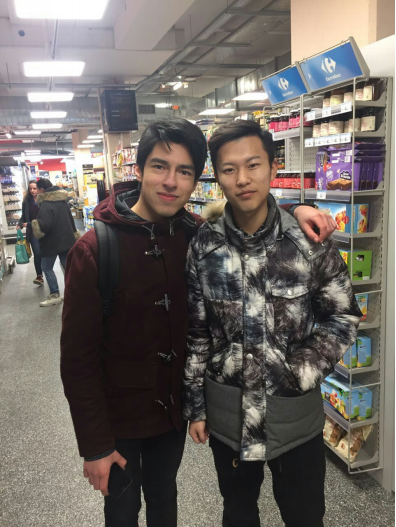 出了餐厅,心满意足的我们在餐厅门口驻足。我竟突然觉得迎面走来的一个法国学生很眼熟。自以为认识他(以为一起上过课的我),便热情的跟他打招呼,他也很热情地跑过来跟我们聊天。