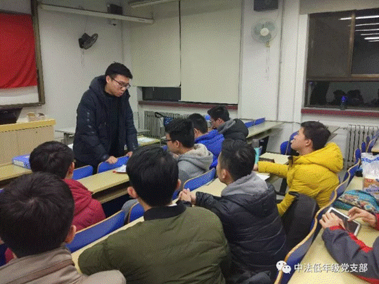 1月4日晚,为全面贯彻落实党中央“党要管党、从严治党”的总体部署和要求,认真学习十九大精神,3522vip浦京集团低年级党支部邀请北航十九大精神宣讲团的朱博康同志于2号教学楼315教室做主题为“新时代的全面从严治党”的宣讲,以使得党支部内全体党员提高认识、转变作风、遵章守纪、廉洁从业,提高拒腐防变意识。党支部书记王泽远、组织委员张宇昊、宣传委员王凯落、15、16级导员以及党支部党员参与了此次活动。