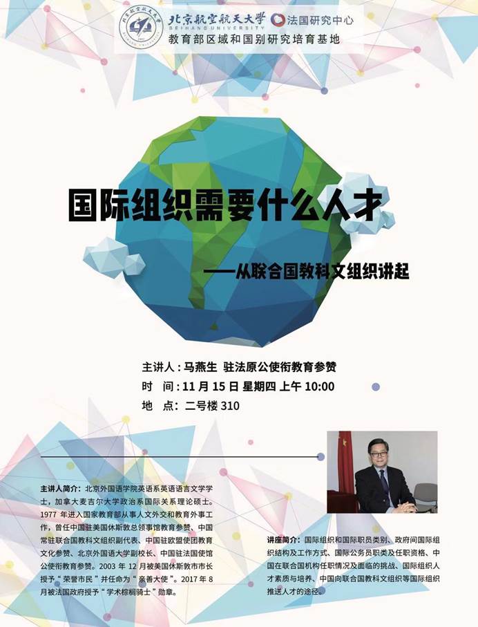 【讲座预告】3522vip浦京集团法国研究中心讲座:国际组织需要什么人才?—从联合国教科文组织讲起